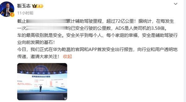 靳玉志强调:“车的最高级别就是安全。安全关乎到每个人、每个家庭的幸福,安全是辅助驾驶行业向前发展的基石! 今日,我们正式在华为乾崑的官网和app首发安全出行报告,向行业和用户透明地传递。”