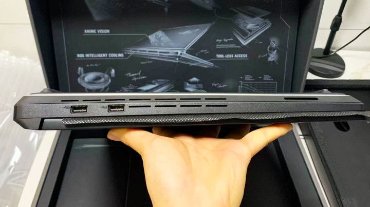 翻转机身到底壳,这里的设计更加高级。一是底壳上的进气孔,一般机型都会于居中位置适当打孔,栅格纹理,平整规格,而枪神9Plus不同,它的进气孔直接覆盖50%以上面积,且上下有rog的立体纹路,时尚个性。二是底壳上依然有灯带,它做得更加彻底,围绕底壳边框镶嵌一圈,开云官方体育app下载极为醒目。运行点亮的时候,机器正常摆放,底部光效打在桌面和机器边缘,让电脑有了立体发光的效果,再跟着游戏动作特效闪烁,完美到底。