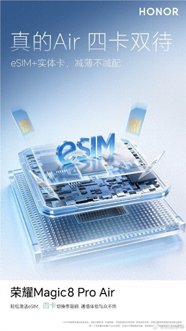 针对通信功能,该机突破性支持四卡双待方案,在保留双实体SIM卡槽的同时,集成双eSIM功能。用户可同时使用四张电话卡,满足商务出行、跨国旅行等场景的通信需求,无需频繁插拔卡片即可实现无缝切换。