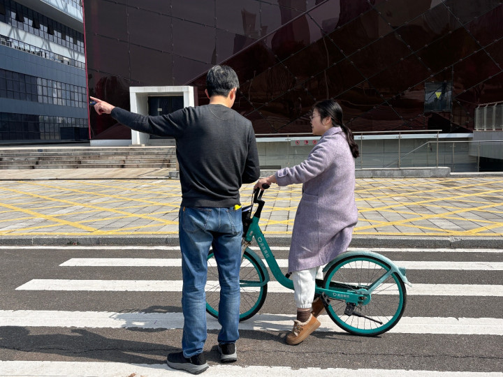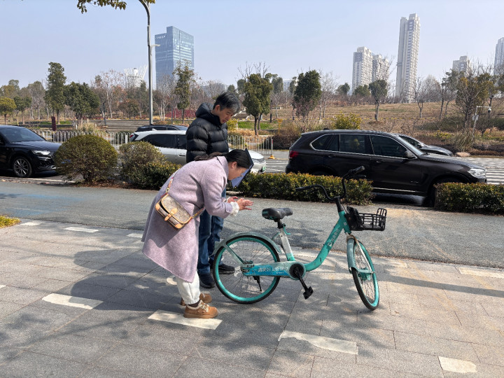 孙先生教学员怎样开启分享单车。图/九派新闻蔡晓萱