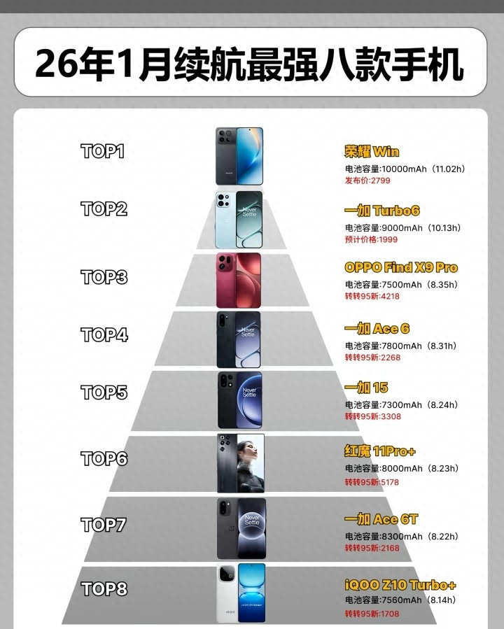 10:纵观本次榜单,我们可以清晰地看到,7000mAh到8000mAh的电池容量已成为高端及性能手机的主流标准,而荣耀Win更是将电池容量推向了10000mAh的全新高度。这场以用户体验为核心的“续航革命”,最终受益的将是每一位渴望摆脱充电宝束缚的消费者。
