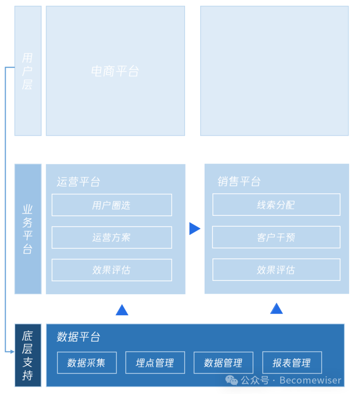 仍然是房子的例子,为了卖房需要有人买材料,有人建房子,也有人要卖房子,所谓数据、运营、销售平台无非是为了更好的卖房子。
