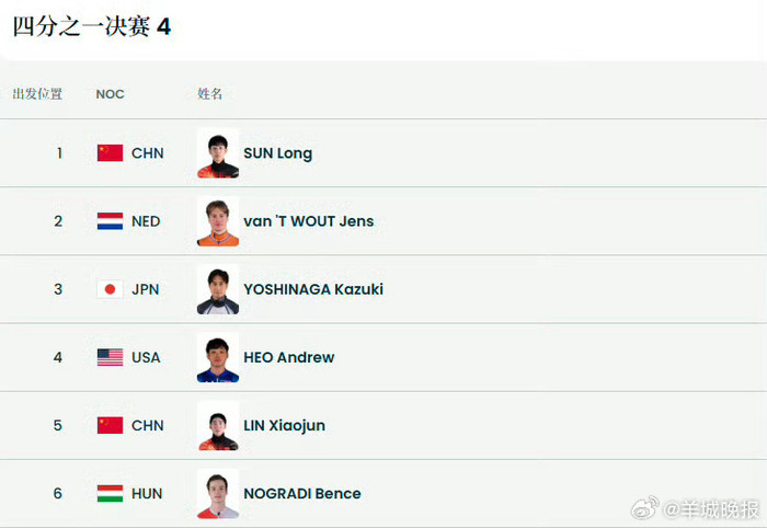 须眉1500米1/4决赛:@刘少昂shaoang第三组,开云同组有黄大宪;@孙龙-L@林孝埈Lin_xiaojun第四组,同组有范特沃特